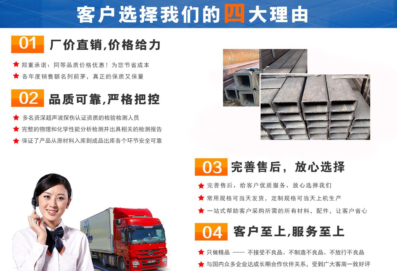 無錫盛灝特鋼有限公司長(zhǎng)期銷售Q355B方矩管,鍍鋅方矩管,大口徑方矩管,厚壁方矩管,無縫方矩管等各種方管產(chǎn)品!產(chǎn)品廣泛應(yīng)用于鋼結(jié)構(gòu)建筑(鋼管混凝土、管樁、管桁架,橋梁、海上作業(yè)平臺(tái)、港口碼頭建設(shè)、電視通訊鐵塔、電力鐵塔等鋼結(jié)構(gòu)管)。壓力管道(石油、天然氣、煤漿等輸送)、機(jī)械制輥等領(lǐng)域。  公司自創(chuàng)辦以來,一直堅(jiān)持“誠(chéng)信合作,共同發(fā)展”的經(jīng)營(yíng)理念。  一直以來我們本著“以誠(chéng)相待,以信為本,互利互惠,共同發(fā)展”的長(zhǎng)期方針,充分發(fā)揮現(xiàn)貨資源優(yōu)勢(shì)為您提供“可靠的產(chǎn)品、過硬的質(zhì)量、完善的服務(wù)”,歡迎廣大新老客戶前來洽談業(yè)務(wù)。  公司以“至誠(chéng)至信,雙利雙贏”為根本宗旨,堅(jiān)持科技興企的發(fā)展策略,恪守商規(guī),創(chuàng)新進(jìn)去,贏得聲譽(yù),贏得了市場(chǎng),得到了社會(huì)各階層的認(rèn)可。公司以雄厚的實(shí)力、可靠的質(zhì)量、儲(chǔ)存鋼管門類齊全、庫(kù)存量大之優(yōu)勢(shì),本著守法、守信、創(chuàng)新的理念,打造精品,發(fā)展鋼管多元化品種,滿足客戶各種需求,以低廉的價(jià)格、熱情的服務(wù)面向國(guó)內(nèi)外客戶,歡迎鋼管界同仁加盟!我們?yōu)榭蛻籼峁┲艿降姆?wù) !  公司為客戶提供以下服務(wù)  服務(wù)三保: 保證質(zhì)量、保證時(shí)間、保證數(shù)量。  服務(wù)宗旨: 雄厚的實(shí)力、優(yōu)質(zhì)的產(chǎn)品、低廉的價(jià)格、周到的服務(wù)。  批零兼營(yíng),一支起定。...
